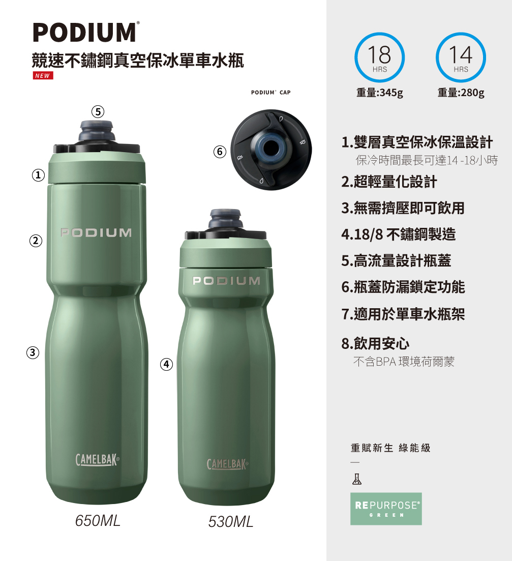 CamelBak 530ml Podium 競速真空保冰單車水瓶 青苔綠