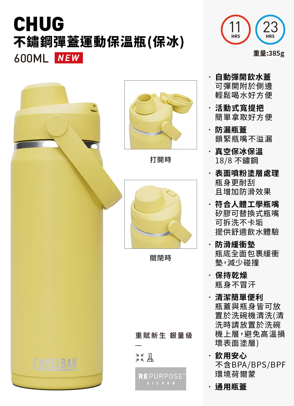 600ml Chug 不鏽鋼彈蓋運動保溫瓶(保冰) 檸檬黃( CB2932701060 )