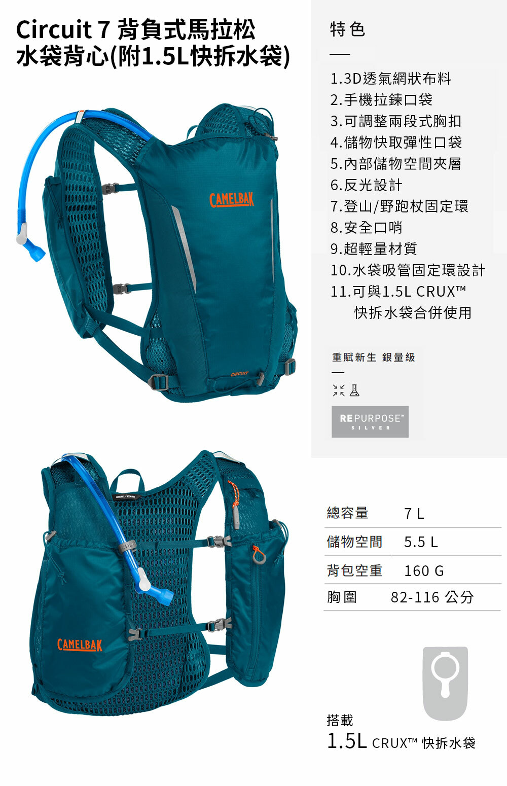 CamelBak Circuit 7 背負式馬拉松水袋背心(附1.5L快拆水袋) 湖水綠